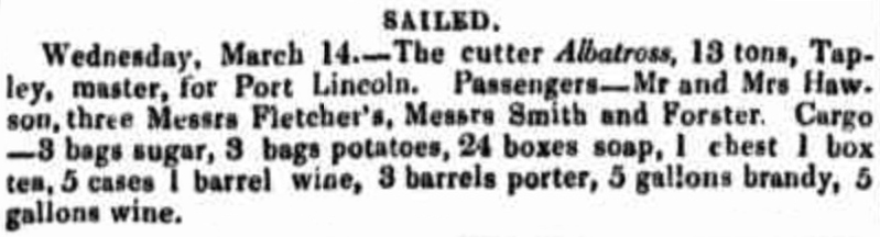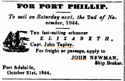 to South Australia via Sydney as a seaman and also worked as a warehouseman, possibly employed by his brother Richard Tapley of Port Adelaide. He was