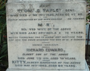 and 8 other siblings. Their oldest brother, Richard Edward Tapley was by that time 27 years of age and probably living in Mauritius although a Richard